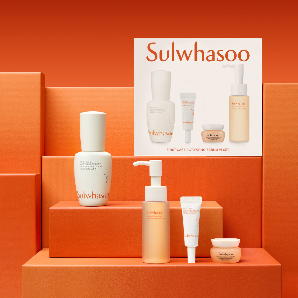 <潤燥ファーストケアアクティブセラム>水、変性アルコール、BG、ベタイン、1,2-ヘキサンジオール、オタネニンジン根エキス、オウゴン根エキス、ジオウ根エキス、ジャノヒゲ根エキス、シャクヤク根エキス、ハス花エキス、ナツメ果実エキス、ペルシアグルミ種子エキス、ウメ果実エキス、アマドコロ根茎エキス、マドンナリリー根エキス、カカオエキス、エチルヘキシルグリセリン、メチルトリメチコン、カラギーナン、ハチミツ、3−O−エチルアスコルビン酸、グリチルリチン酸2K、タウリン、マデカッソシド、ビオサッカリドガム-1、ナットウガム、水添レシチン、ビスPEG-18メチルエーテルジメチルシラン、カプリル酸グリセリル、アデノシン、プロパンジオール、ペンチレングリコール、PG、PPG−13デシルテトラデセス−24、カルボマー、キサンタンガム、セルロースガム、トコフェロール、デキストリン、ポリメタクリル酸グリセリル、トロメタミン、クエン酸、EDTA-2Na、香料 <ジェントルクレンジングフォーム>水、ココイルグリシンK、ココアンホジ酢酸2Na、コカミドプロピルベタイン、(アクリレーツ/メタクリル酸ベヘネス-25)コポリマー、水添パーム油脂肪酸PEG-200グリセリル、塩化Na、1,2-ヘキサンジオール、ペンチレングリコール、アシタバエキス、マグワ葉エキス、ウンシュウミカン果皮エキス、クリ殻エキス、ハトムギ種子エキス、ウキクサエキス、ヤマノイモ根エキス、カカオエキス、ウルムスダビディアナ根エキス、キイチゴ果実エキス、アッケシソウエキス、エチルヘキシルグリセリン、ヤシ油脂肪酸PEG-7グリセリル、BG、(カプリリル/カプリル)グルコシド、イソステアリン酸、ココイルメチルタウリンNa、トコフェロール、デキストリン、水酸化K、クエン酸、EDTA-2Na、EDTA-4Na、安息香酸Na、香料 <エッセンシャルファーミングクリーム>水、グリセリン、ジ(カプリル/カプリン酸)BG、BG、エチルヘキサン酸セチル、トリ(カプリル酸/カプリン酸)グリセリル、プロパンジオール、カプリリルメチコン、1,2-ヘキサンジオール、ジステアリン酸ポリグリセリル-3メチルグルコース、ステアリン酸グリセリル、リンゴ酸ジイソステアリル、ジメチコン、スクワラン、トレハロース、ナツメ果実エキス、マグワ葉エキス、オウゴン根エキス、クズ根エキス、クコ果実エキス、カカオエキス、ジオウ根エキス、シャクヤク根エキス、アマドコロ根茎エキス、ハス花エキス、加水分解ダイズエキス、オニユリ鱗茎エキス、アラントイン、プルラン、アデノシン、水添ポリイソブテン、(カプリル酸/カプリン酸)ヤシアルキル、カプリル酸グリセリル、ジメチコノール、カルノシン、エチルヘキシルグリセリン、β-グルカン、イソステアリン酸水添ヒマシ油、(C9-12)アルカン、ステアリン酸PEG-100、セテアリルアルコール、(アクリロイルジメチルタウリンアンモニウム/メタクリル酸ベヘネス−25)クロスポリマー、イソステアリン酸ソルビタン、ポリソルベート60、ポリソルベート20、(アクリル酸ヒドロキシエチル/アクリロイルジメチルタウリンNa)コポリマー、ポリイソブテン、トコフェロール、デキストリン、ポリアクリレート-13、メタリン酸Na、香料